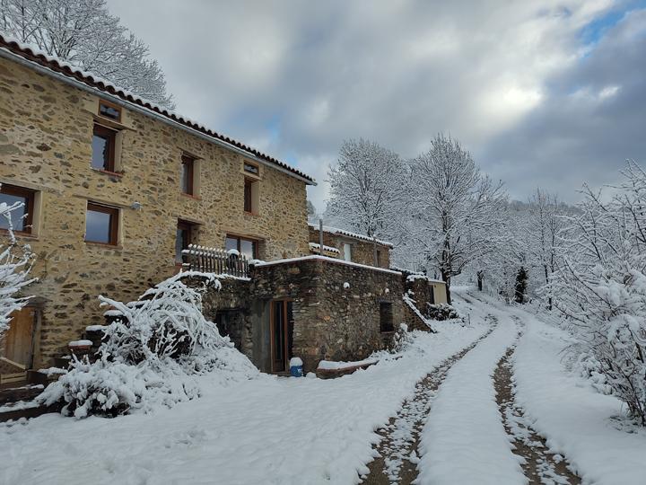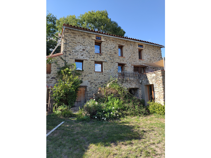 Propriété écologique située au coeur du Haut-Vallespir, dans un cadre paisible et naturel, avec de très belles perspectives sur la nature environnante, les montagnes et la mer.
